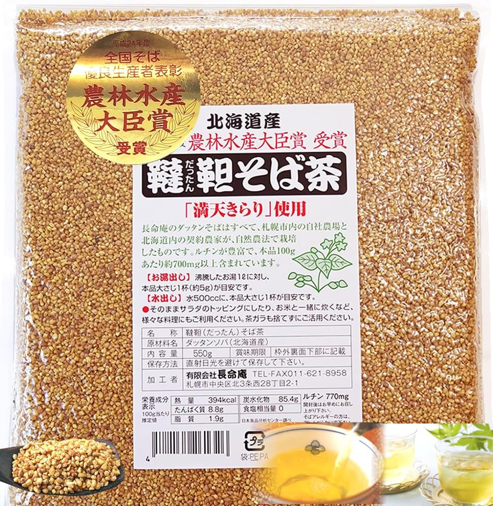長命庵の「韃靼そば茶 550g」は、北海道産・無農薬・ノンカフェイン・特許焙煎という点で、健康志向の方に非常に魅力的な商品です。香ばしさと栄養価の高さが両立しており、飲用・食用どちらにも使える汎用性が光ります。